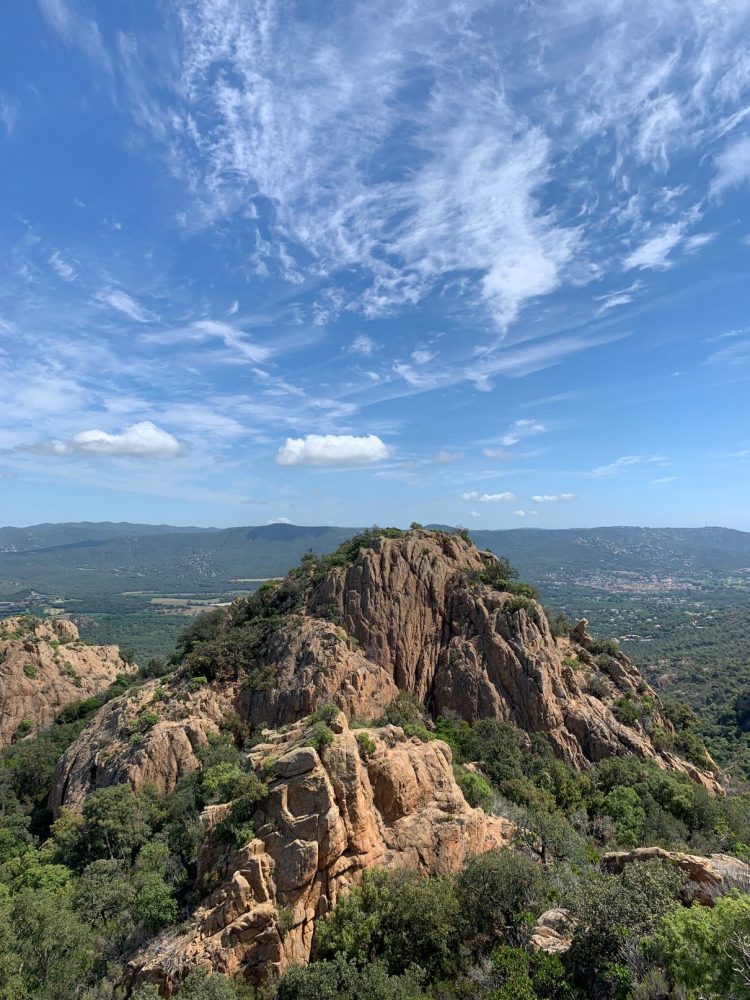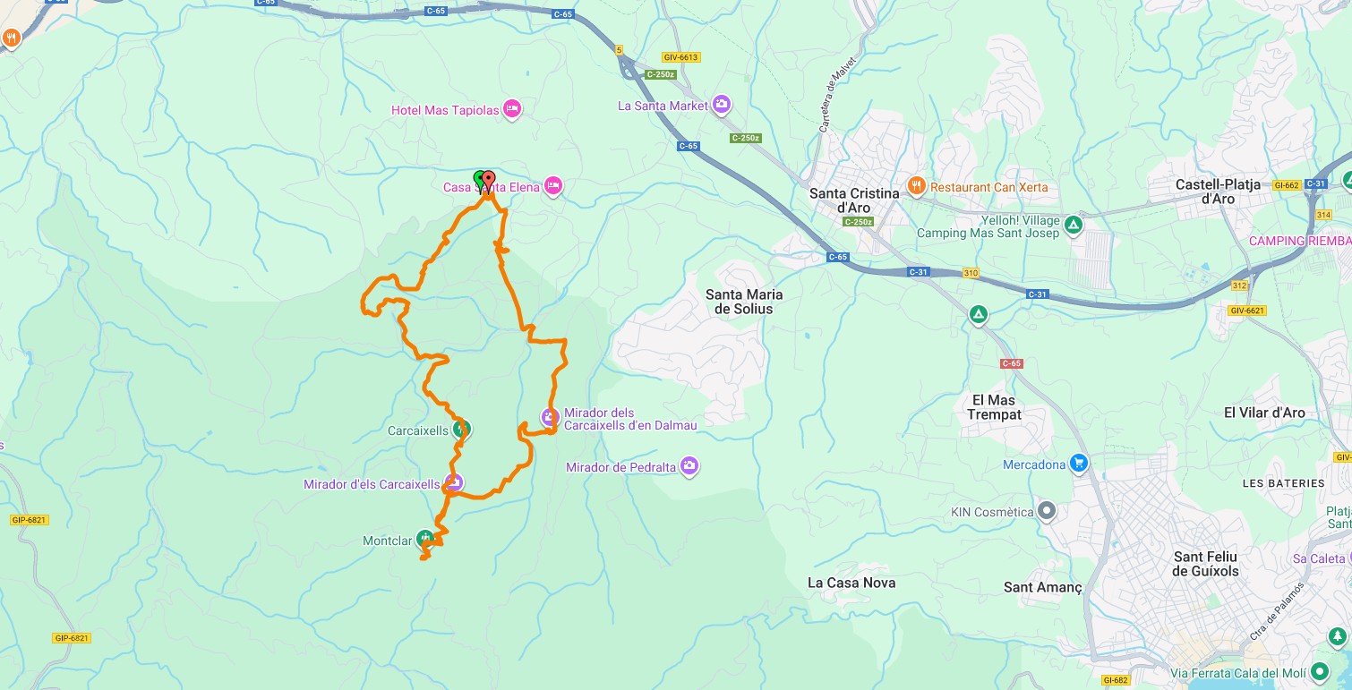 A mesura que avancem, deixarem enrere el terreny suau i ens endinsarem en el cor dels Carcaixells, una de les zones més emblemàtiques del massís. Aquí la sendera s’estreny, apareixen petites grimpades, passos aeris i trams equipats amb cordes o grapes: gens tècnic, però sí molt divertit i diferent. Cada pas ens regala noves vistes de la mar, de Calonge i dels pujols ondulats de l’entorn. Un tram perfecte per a sentir l’aventura en un ambient segur i compartit. 🧗‍♀️🌊