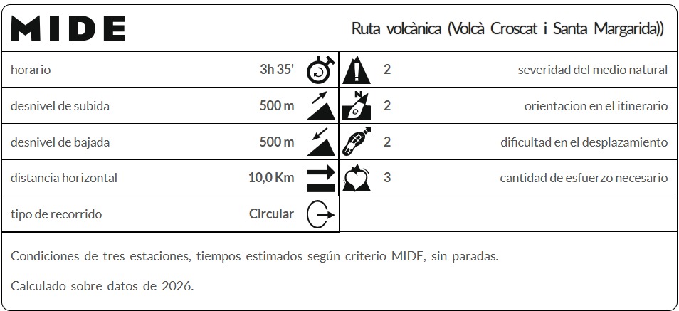 • Llegar al Volcán del Croscat y observar su gran corte de greda, una de las formaciones más impactantes de la zona 🌋